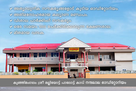 • Address: ശ്രീ മല്ലിയോട്ട് പാലോട്ട് കാവ്, മല്ലിയോട്ട്, കുഞ്ഞിമംഗലം