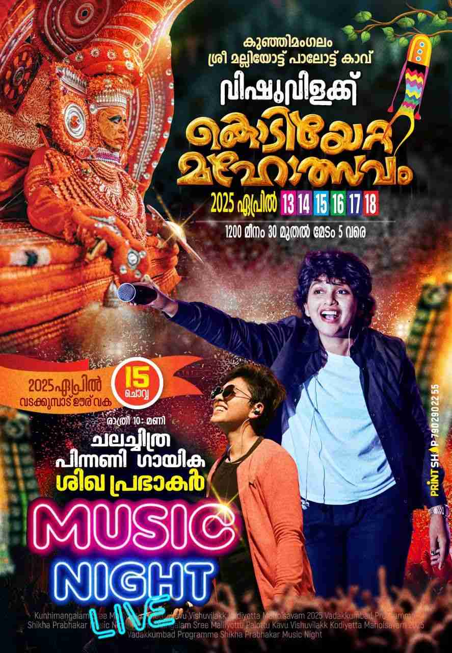 വടക്കുമ്പാട് ഊര് കുഞ്ഞിമംഗലം ശ്രീ മല്ലിയോട്ട് പാലോട്ട് കാവ് വിഷുവിളക്ക് കൊടിയേറ്റ മഹോത്സവം 2025 വടക്കുമ്പാട് ഊര് വക പ്രേത്യേക പരിപാടി ഏപ്രിൽ 15 ന്... വടക്കുമ്പാട് ഊര്